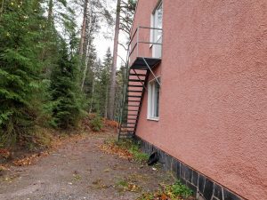Rakennus on ns. puolitoistakerroksinen, eli alakerrassa on huoneita joista on pääsy ulos Marssitien puolelle.