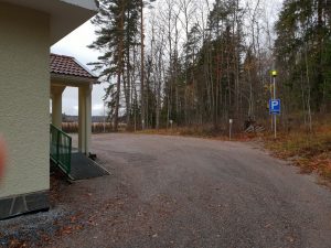 Pysäköintitiloja on jonkun verran piha-alueella (jonkun alueen voi rajata pelin ulkopuolelle?) ja kulkutie Marssitieltä on riittävän leveä että sen toiseen reunaan mahtuu autoja. Välimatka Hiihtomaan pelialueelle ei ole kuin pari kilometriä…siellä on enemmän pysäköintitilaa. Kovin paljon autoja ei kulkutien viereen mahdu…